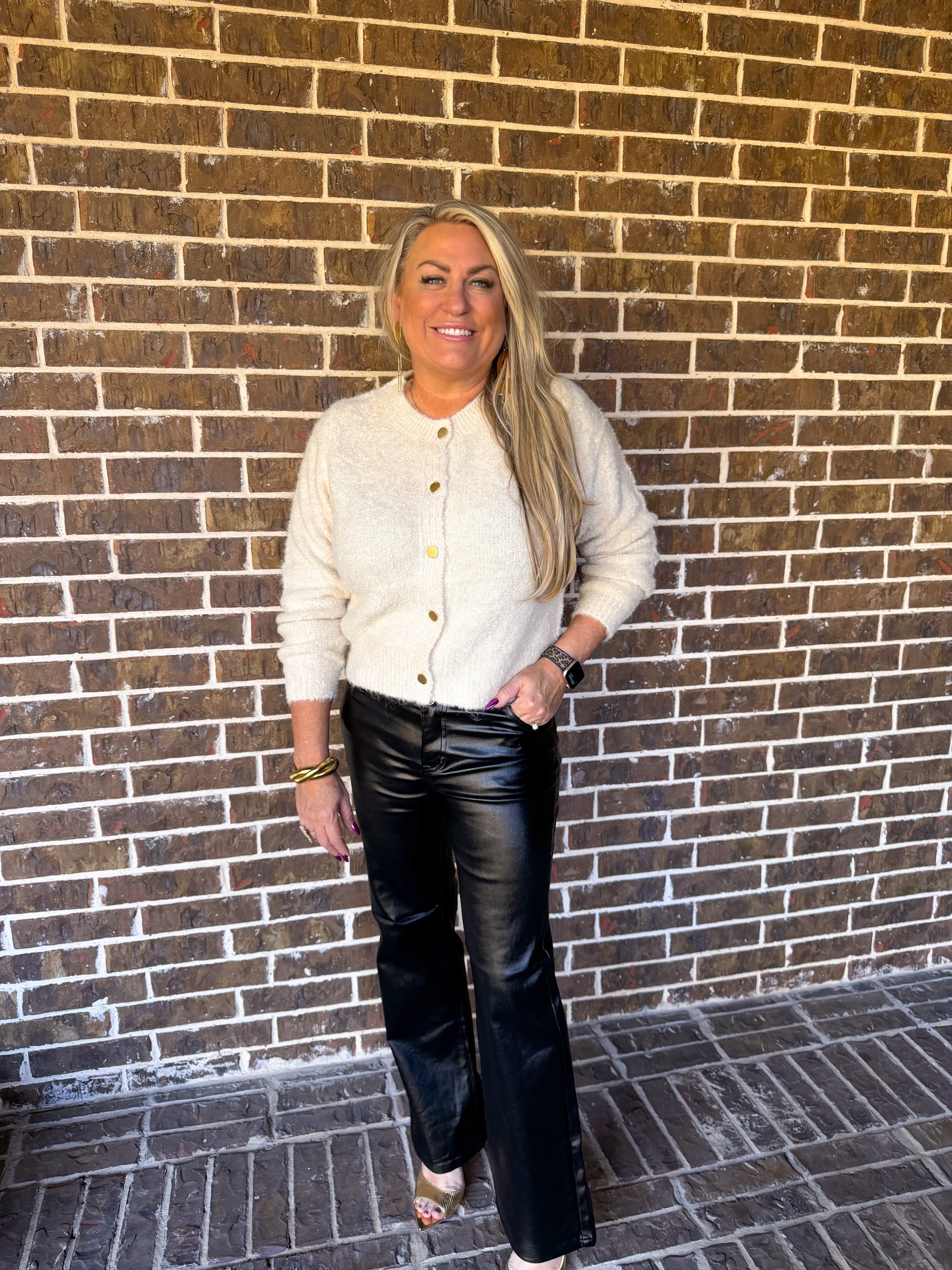 Bring softness and warmth to your wardrobe with this Cozy Cream Button-Up Cardigan. Made from a plush, textured knit, this cardigan delivers a comfortable, slightly oversized fit while still offering a polished, put-together look. The gold-tone buttons add a subtle touch of elegance, making it easy to dress up or style casually.