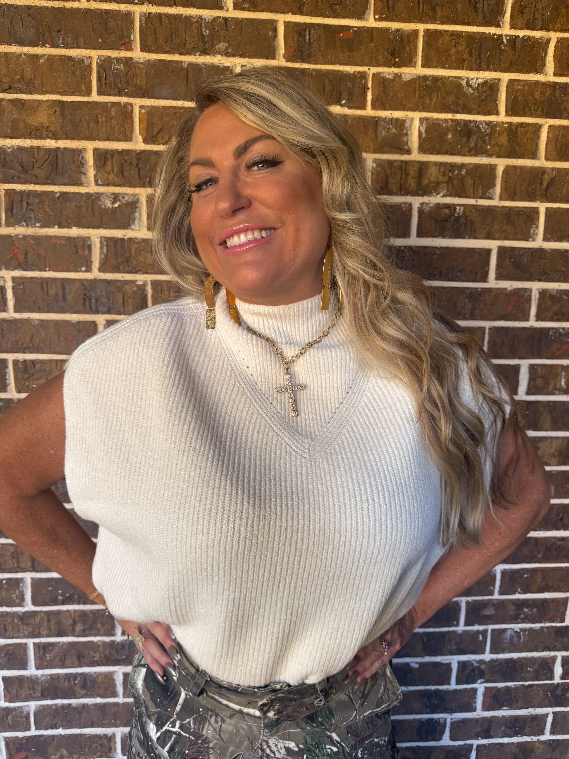Ivory Luxe Sleeveless Mock Neck Sweater